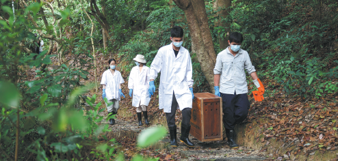 After spending 136 days at the Shenzhen Wildlife Rescue Center, a young leopard cat cub hesitated a moment, sniffing the air outside the door of its portable cage, before running into the woods of Wutong Mountain in Guangdong province on Feb 1.