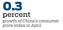 Official data showed the country's consumer price index, a key indicator of inflation, rose 0.3 percent year-on-year in April after a 0.1 percent gain in March.