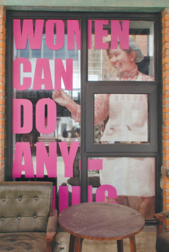 Inside the store, there is a wall presenting a selection of images of remarkable women who have defied gender expectations and made extraordinary contributions.