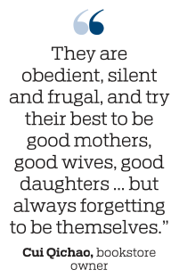 "They are obedient, silent and frugal, and try their best to be good mothers, good wives, good daughters and good daughters-in-law but always forgetting to be themselves," Cui says.