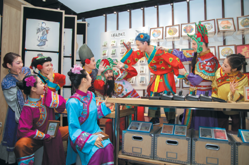 Here, ancient Chinese color prints — Taohuawu woodblock prints — take center stage. Among them, the traditional New Year painting Harmony and Happiness is a big hit.