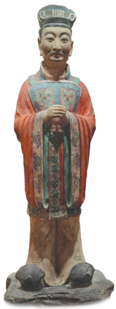 The curator also adds that governance was effective and social harmony prevailed during the Zhenguan era, and that the Tang people of the period did not have access to the luxuriant attire of the later period.