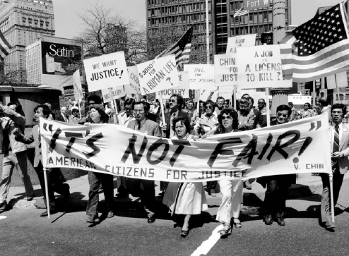 And earlier work on the re-enactment of the finished Transcontinental Railroad of 1869, which included descendants of Chinese railroad workers. It also included the protests for Vincent Chin, a Chinese-American man beaten to death by two white autoworkers in 1982.