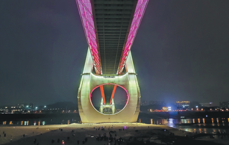 Chongqing Baijusi Yangtze River Bridge is 1,384 meters long, connecting the districts of Dadukou and Banan in the city. The main tower of the bridge is 236 meters high, which is equivalent to the height of an 84-story building. It is the tallest bridge tower in the central urban area of Chongqing. The bottom of the bridge tower is designed as a transparent circle, evoking the image of a science fiction movie under the play of light and shadow.