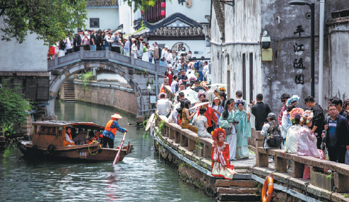 These days, those taking a boat along the Pingjiang River are still looking up to their pedestrian counterparts strolling alongside them on the stone-paved Pingjiang Road, the latter sandwiched between the waterway and a row of black-tiled, white-painted houses, most of which date back to the late 19th and early 20th centuries.
