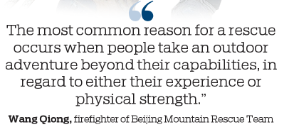 Zhang, an outdoor enthusiast himself, learned outdoor rescue skills, such as rope-tying and emergency medical care, on his own. In the early 2000s, he established a civilian mountain rescue team in Beijing, which has more than 40 volunteers.