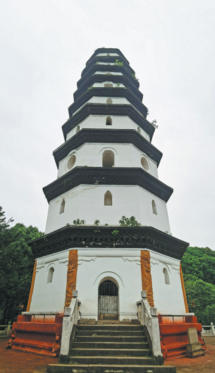The eight-floor brick pagoda with a height of 35.8 meters was built in 1569 for local religious people, men of letters and scholars to store their classics, according to an illustration in the park.