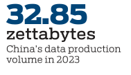 The surge in digital innovation is underpinned by robust data infrastructure. According to a report released by the National Data Bureau, China's data production reached 32.85 zettabytes (1 ZB equals approximately 1 trillion gigabytes) in 2023, a 22.44 percent year-on-year increase.