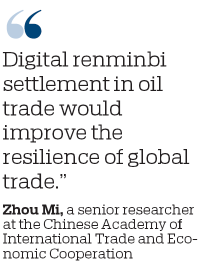 "Digital renminbi settlement in oil trade would improve the resilience of global trade, reduce global economic fluctuations, and strengthen the resilience of economic development in various global parties," Zhou added.