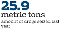 Last year, about 42,000 drug-related cases were solved, up 12.6 percent year-on-year; 65,000 suspects were captured, an increase of 21 percent year-on-year; and 25.9 metric tons of drugs were seized in total, 18 percent more than in the previous year, the report said.