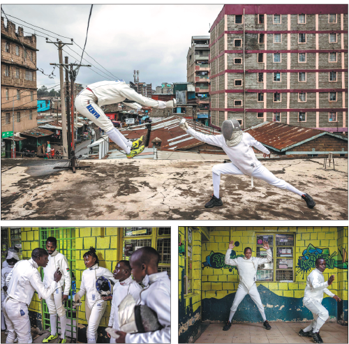 After the fencers warmed up in a community center — recent floods in Kenya destroyed their usual training grounds — they hit the streets, with curious onlookers and captivated children following their moves.