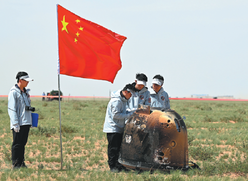 Carrying the unique lunar samples, the reentry capsule of the Chang'e 6 robotic probe touched down at 2:07 pm on Tuesday on its preset landing site in Siziwang Banner in the Inner Mongolia autonomous region, successfully completing a 53-day voyage that involved a host of complex and challenging maneuvers.