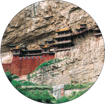 Originally built in the mid-Northern Wei Dynasty and renovated in the Ming and Qing dynasties, the temple is made up of two three-story wooden-structured pavilions and a yard linked by staircases and steps. These line along the surface of a sheer cliff rising 50 meters above a stream at the foot of Hengshan Mountain.
