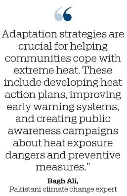 "Adaptation strategies are crucial for helping communities cope with extreme heat. These include developing heat action plans, improving early warning systems, and creating public awareness campaigns about heat exposure dangers and preventive measures," Bagh Ali, a climate change expert from Pakistan.