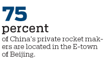 Beijing E-town hosts a cluster of over 70 aerospace companies including 75 percent of China's private rocket makers, covering various fields such as launch vehicles, satellite development, satellite applications, ground equipment, and technology applications.