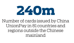A businessman from Spain returned to the International Trade Mart in Yiwu, Zhejiang province, which he had not been able to visit for four years. A shopkeeper there recommended he pay with his international Union-Pay card, which made his wholesale purchases much easier.