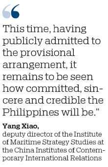 "This time, having publicly admitted to the provisional arrangement, it remains to be seen how committed, sincere and credible the Philippines will be," he said.