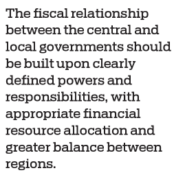 The fiscal relationship between the central and local governments should be built upon clearly defined powers and responsibilities, with appropriate financial resource allocation and greater balance between regions. And the tax-sharing system should be optimized by improving the local tax system, the central government payment system for transferring funds to local governments, and the local income and expenditure system.