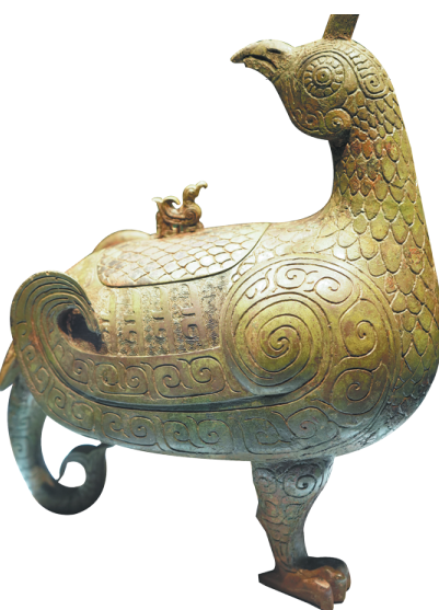 Among its bronzeware exhibits, the most famous include a bird-shaped zun — a kind of wine vessel — dating to the Western Zhou Dynasty (c.11th century-771 BC); a beast-shaped gong — another kind of wine vessel — dating to the Shang Dynasty (c.16th century-11th century BC); and a copper plate held by a man riding an animal dating to the Warring States Period (475-221 BC).