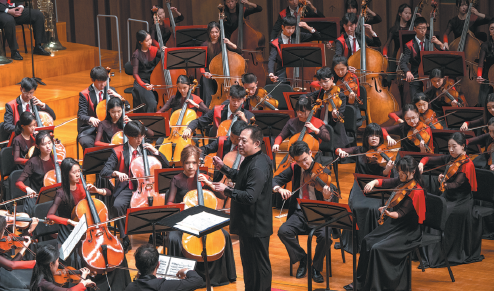 During a recent rehearsal at the NCPA in Beijing, Lyu led the Beijing Youth Symphony Orchestra to perform Bao's Selections from Chinese Sights and Sounds, including Dui Hua (Dialogue on Flowers), a piece combining symphonic music with Chinese folk elements. Under the guidance of the experienced conductor and principal musicians of the China NCPA Orchestra — the resident symphony orchestra of the NCPA — these young musicians have honed their skills, mastering classical compositions and contemporary pieces alike, preparing to showcase their talents on an international stage.