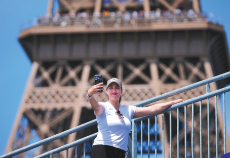 Von Schonlaub shifted her head from side to side, smiling broadly while she held her phone in front of her face and clicked over and over. Paris' iconic Eiffel Tower hovered right behind her, overlooking the site where beach volleyball is being played at the 2024 Paris Olympics.