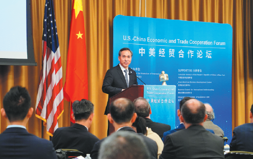 Participants at Monday's forum also included Huang Ping, consul general of the Chinese consulate general in New York, and Peter Tichansky, president and CEO of the Business Council for International Understanding. More than 300 representatives from Chinese and US businesses and trade communities also attended.