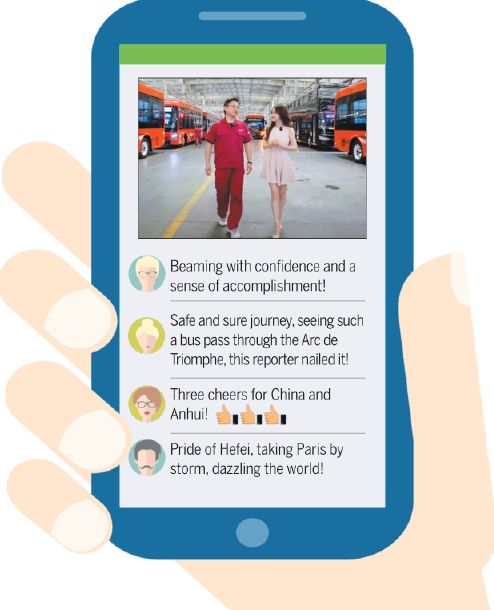 A fleet of Chinese-made pure electric double-decker buses glide along the Seine River, zipping through the Arc de Triomphe and pulling up in front of the Eiffel Tower, making frequent announcements — "Dear passengers, welcome to Paris!" — in eight languages.