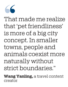 They have found that many county towns are very welcoming to pets. "That made me realize that 'pet friendliness' is more of a big city concept. In smaller towns, people and animals coexist more naturally without strict boundaries," said Wang Yanling.