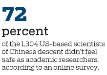 The survey results revealed the chilling effects of the China Initiative. About 35 percent of Chinese scientists in the US said that they felt unwelcome; 72 percent didn't feel safe as academic researchers; 42 percent were fearful of conducting research; and 65 percent were worried about collaborations with China.