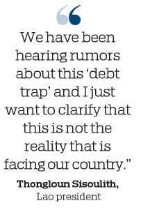 "We have been hearing rumors about this 'debt trap' and I just want to clarify that this is not the reality that is facing our country," the Lao leader was quoted as saying, adding that Lao people are proud of the nation's first high-speed railway.