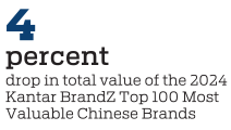 The total value of the 2024 Kantar BrandZ Top 100 Most Valuable Chinese Brands Ranking falls by 4 percent this year, a welcome leveling-off since the previous two years saw double-digit percentage declines.
