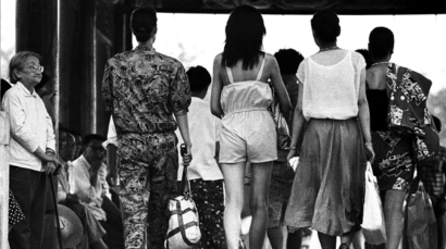 An old lady looks on as some young women take a stroll in Longtan Lake Park, Beijing, in 1986. WANG WENLAN/CHINA DAILY