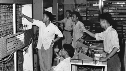 Technicians operate China's first general-purpose electronic computer in 1958. LI JILU/XINHUA