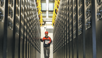 A technician inside the data room of the Gui'an supercomputing center in Guizhou province, on Aug 29. LIU XU/XINHUA