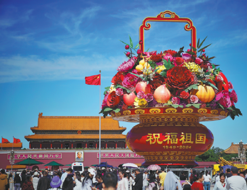 People visit Tian'anmen Square on Sept 22 as it is decorated to celebrate the 75th anniversary of the founding of New China. XUE JUN/FOR CHINA DAILY