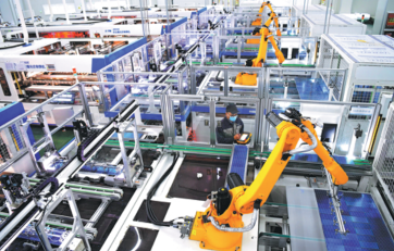 Workers process photovoltaic panels at a workshop in Ganzhou, Jiangxi province, on March 22, 2022. ZHU HAIPENG/FOR CHINA DAILY