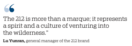 Lu Yunran, general manager of the new 212 brand, said: "The 212 is more than a marque; it represents a spirit and a culture of venturing into the wilderness."