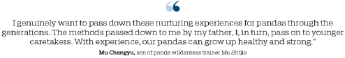 Mu's son, Mu Changyu, followed in his father's footsteps to become a giant panda caretaker.