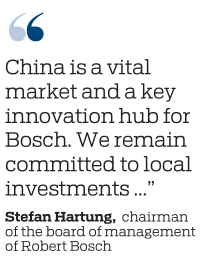 Stefan Hartung, chairman of the board of management of Robert Bosch, visited China last week to celebrate the opening of the new plants. He said: "China is a vital market and a key innovation hub for Bosch. We remain committed to our local investments and fostering growth in the country through technological innovation."