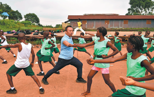 In a small yard in Freetown, capital of Sierra Leone on the southern coast of West Africa, dozens of students practiced their kung fu moves.