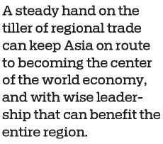 To be sure, the events of the past few years have injected a dose of pessimism into international affairs. Fears are often expressed that we are headed towards worst-case scenarios of confrontation and conflict, with deepening strategic distrust. That's why APEC remains very important as a platform that enables leaders of the region to pragmatically focus on what works rather than what would throw all the hard-won gains away. A steady hand on the tiller of regional trade can keep Asia on route to becoming the center of the world economy, and with wise leadership that can benefit the entire region.