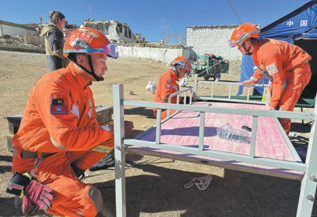 At a news conference on Jan 16, which was jointly held by Xizang's departments of emergency response, healthcare, transportation and housing, and the government of Shigatse, officials said a large number of supplies, including food, medicines, tents, beds, clothes, blankets, cooking utensils, fuel and heating equipment have been delivered to the residents of affected areas.