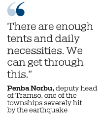 "Natural disasters can't be avoided. Although our house collapsed, my family was brought to a warm tent last night, and we were able to sleep," Sangye said, thanking relief and rescue workers for their untiring efforts to resettle people.