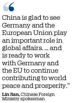 "China is glad to see Germany and the European Union play an important role in global affairs. It supports the integration of Europe and the strategic independence of the EU, and is ready to work with Germany and the EU to continue contributing to world peace and prosperity," Lin added.