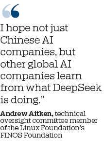 "I hope not just Chinese AI companies, but other global AI companies learn from what DeepSeek is doing. Starting by open-sourcing your software …they've made it really financially approachable to build your own language models," said Andrew Aitken, a technical oversight committee member of the Linux Foundation's FINOS Foundation. "They've done that really well, and the rest of the world can learn from that."