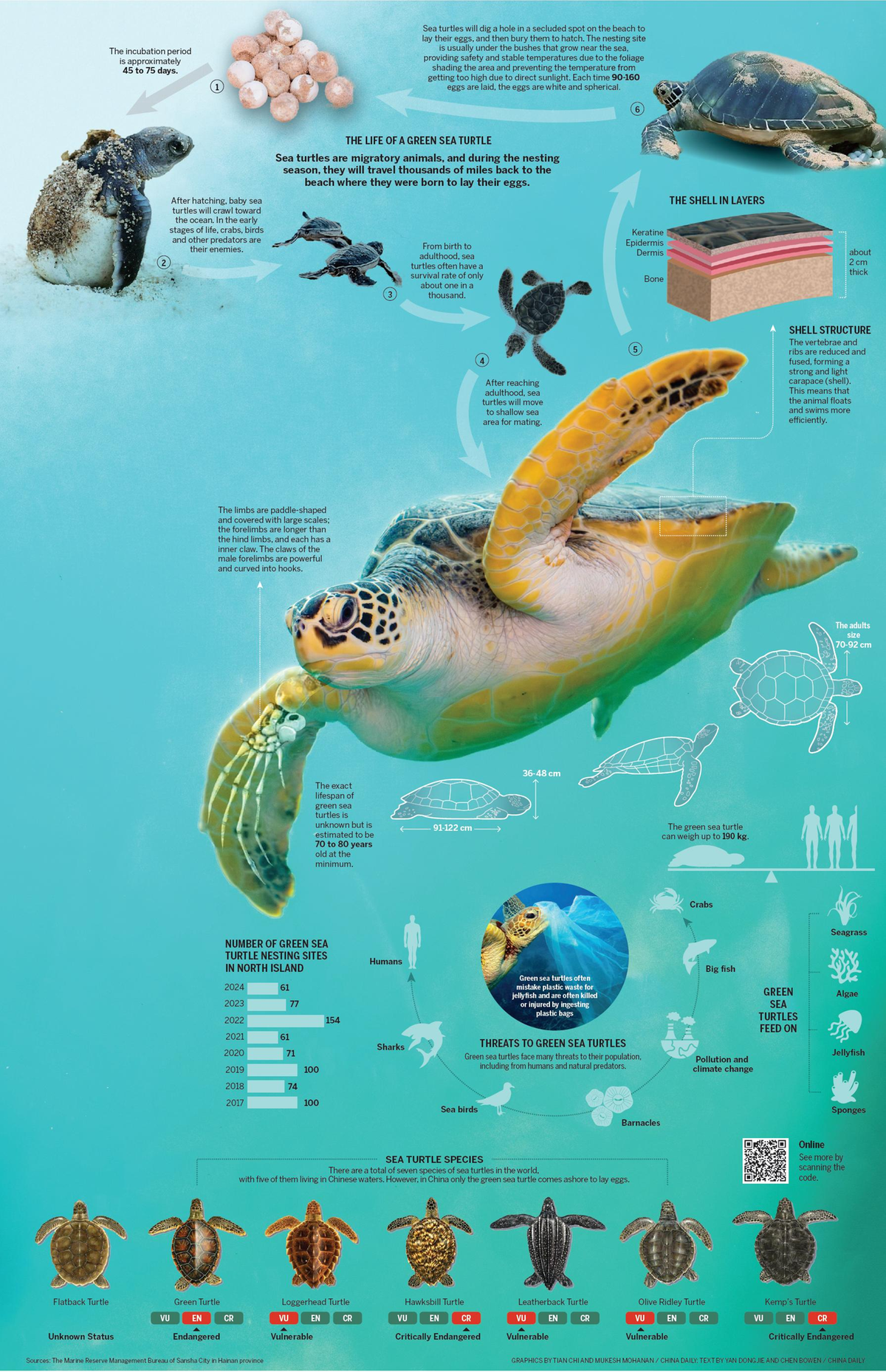 "The Xisha Islands are favored nesting grounds for green turtles. By protecting the beach where they were born, generations of sea turtles will continue to return to lay eggs," he added.