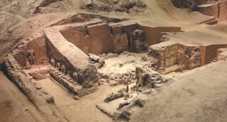 During a recent excavation, archaeologists found a large cemetery about 2 km southeast of the core area. It dates back 4,600 to 4,800 years, predating the core area.