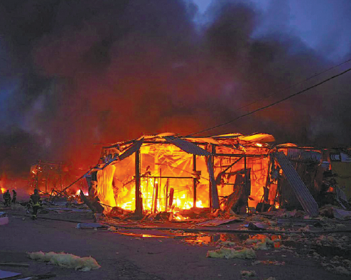 A missile strike partially destroyed a building housing state foreign-language broadcasters, the Russian-language Freedom television channel reported, saying that its newsroom had been destroyed.