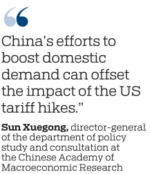 "China's efforts to boost domestic demand can offset the impact of the US tariff hikes," said Sun Xuegong, director-general of the department of policy study and consultation at the Chinese Academy of Macroeconomic Research, a think tank under the NDRC.