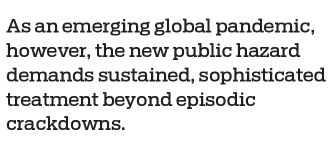 As an emerging global pandemic, however, the new public hazard demands sustained, sophisticated treatment beyond episodic crackdowns.
